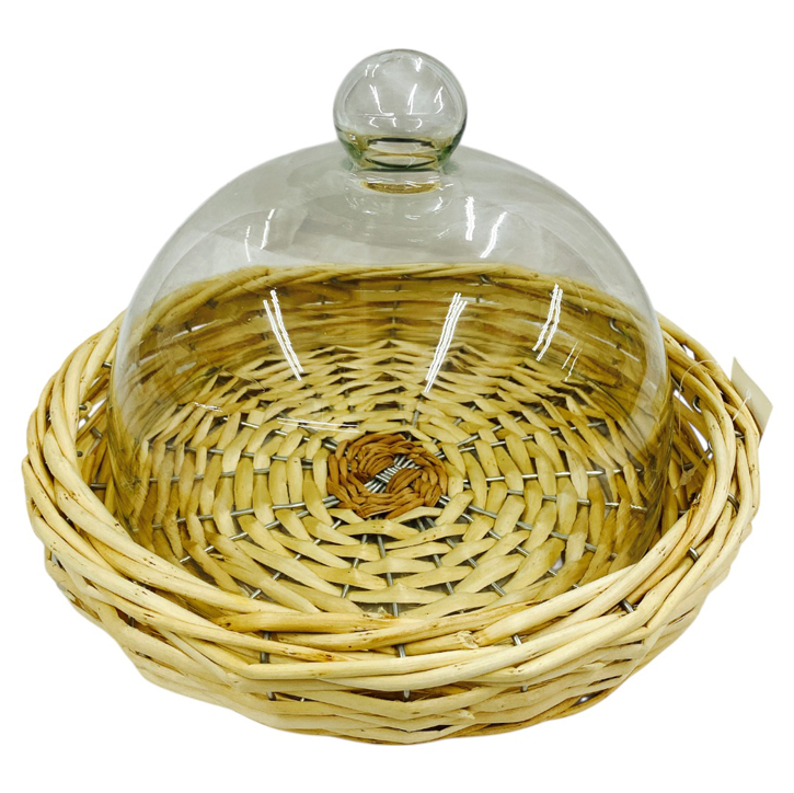 Bandeja de mimbre con campana de vidrio art.ns41470