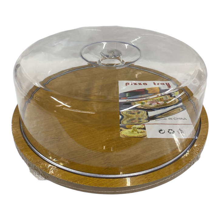 Bandeja redonda de bamboo con campana acrilica