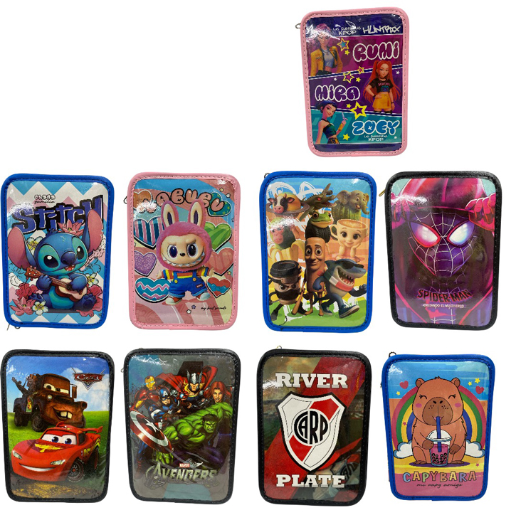 Cartuchera 2 cierres personajes plastificado