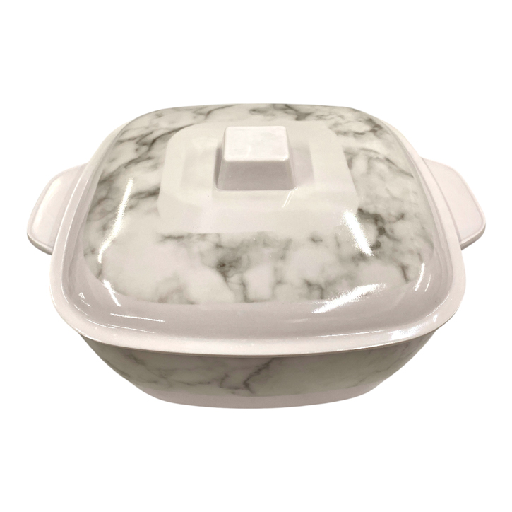 ENSALADERA CUADRADA DE MELAMINA MARMOLADA C/ TAPA