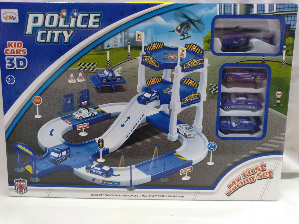 Pista de policia c/3 autos y helicoptero