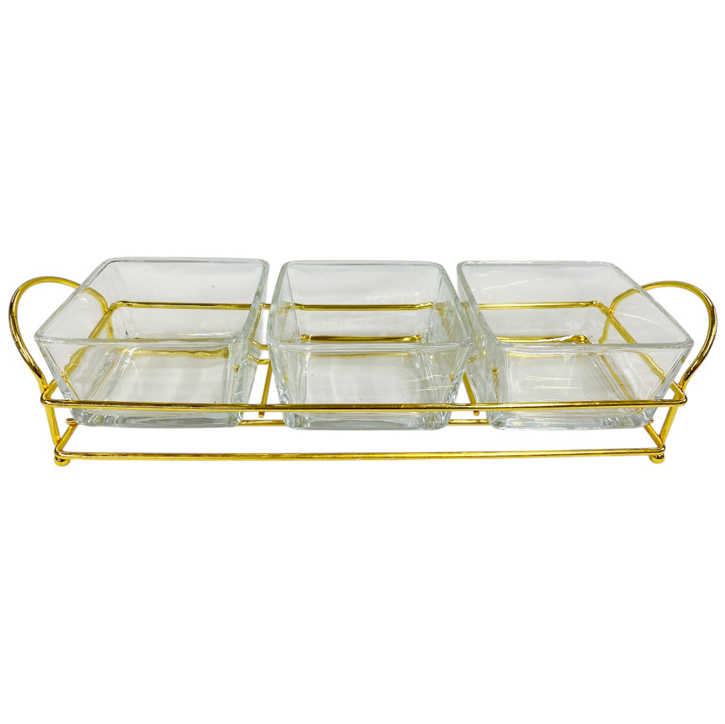 Set x3 bolws cuadrados con rack dorado art.003-23167