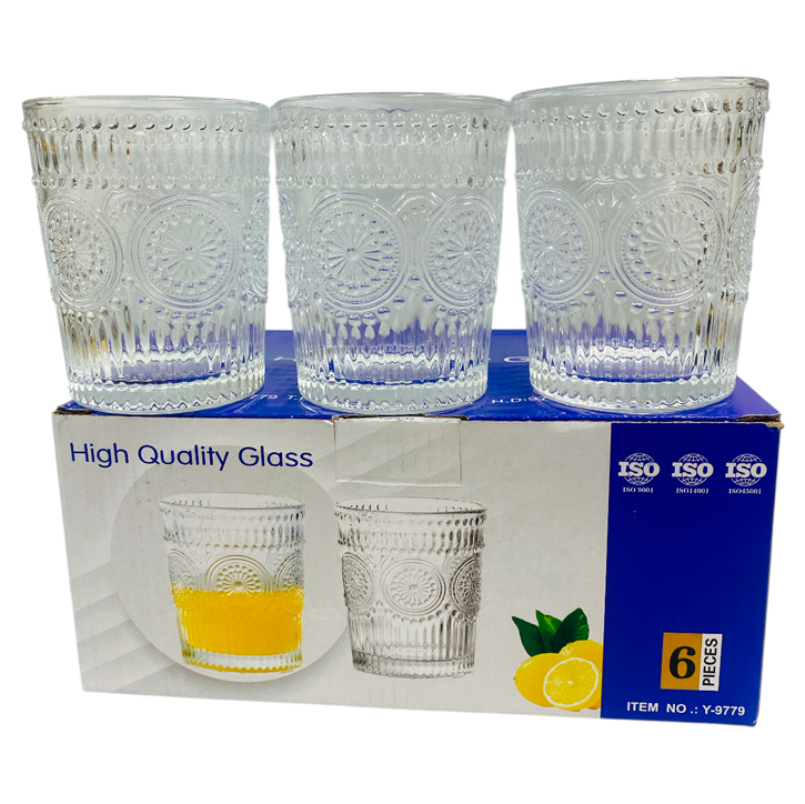 Vasos de vidrio labrados x6 300ml