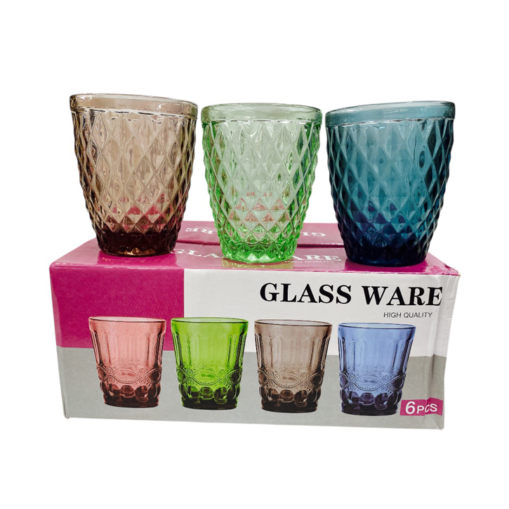 Vasos de vidrio labrados x6 color 300 cc art.133-3